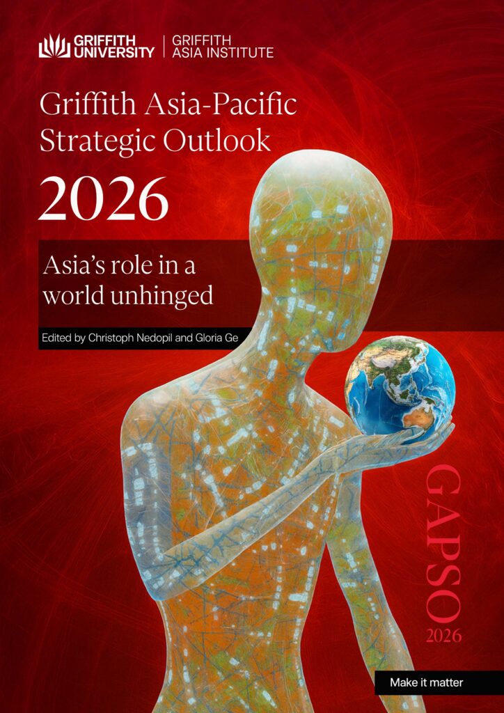 As this edition makes clear, 2026 demands not incremental adjustment but deliberate direction-setting. The complete Griffith Asia Pacific Strategic Outlook 2026: Asia’s role in a world unhinged: From disruption to direction—edited by Christoph Nedopil and Gloria Ge—is now available as a downloadable PDF, bringing together all regional and thematic policy briefs in one integrated volume.