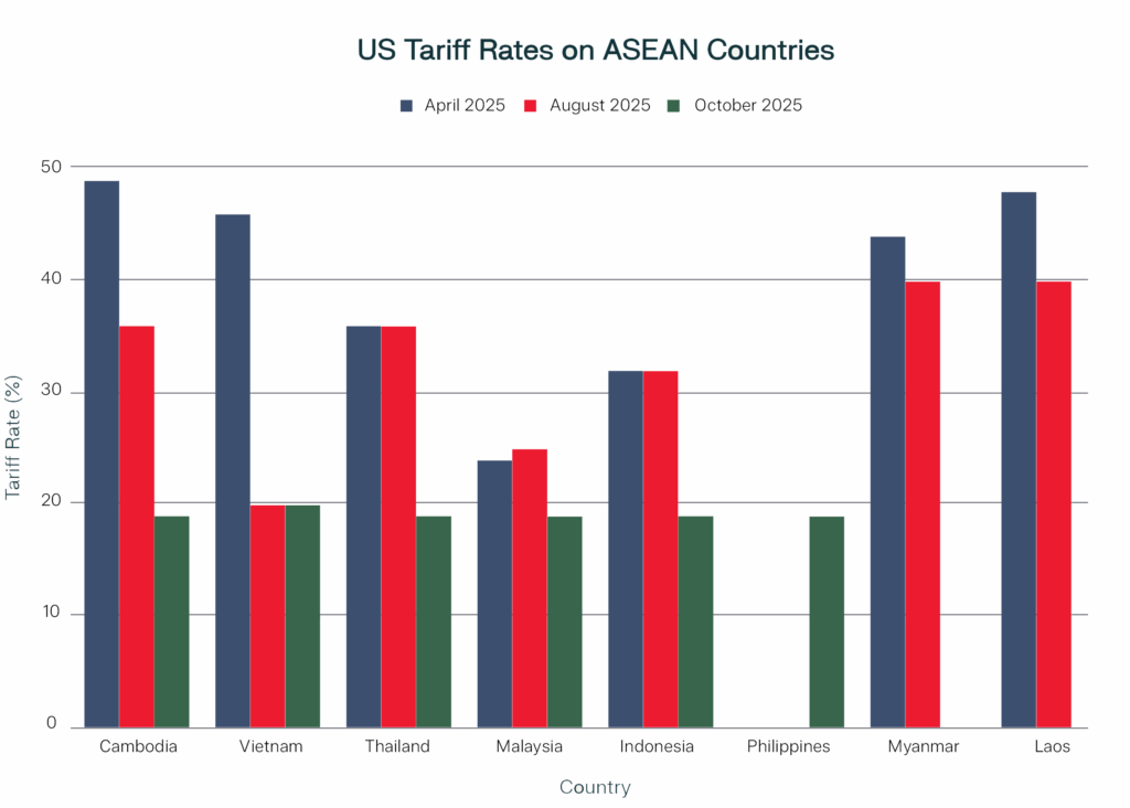 Figure 1: Evolution of US Tariff Rates on ASEAN Countries in 2025